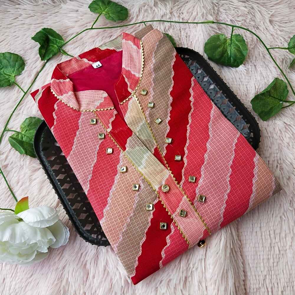 K133 Multi Red Lehriya Kurti